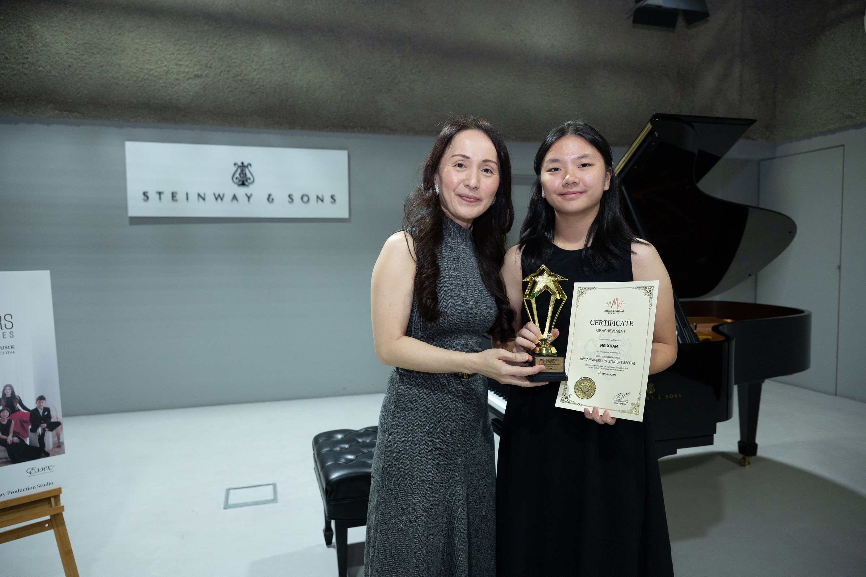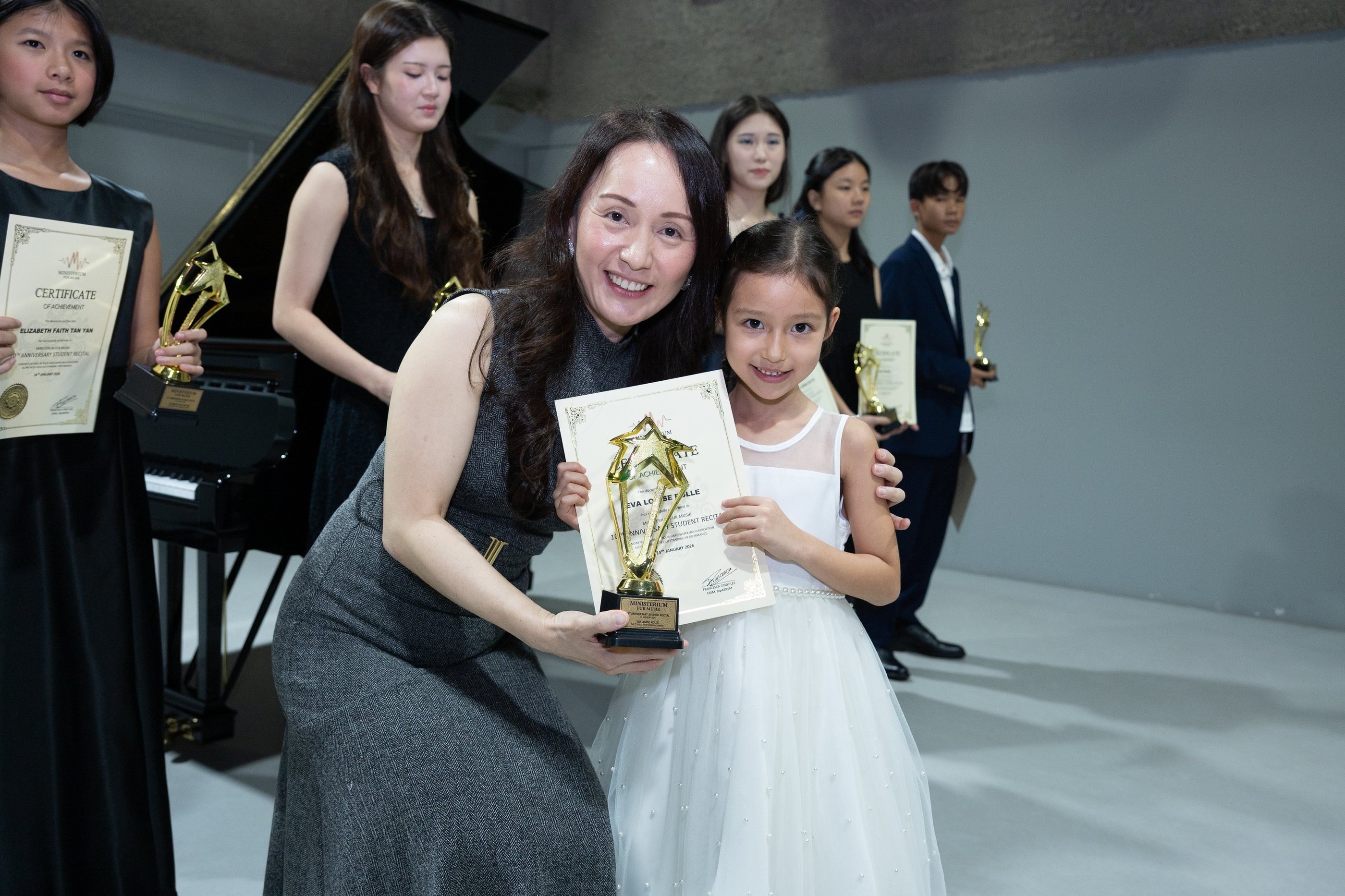 Lee highlighted their remarkable achievements: students setting high distinction records in both performance and theory exams, testaments to their dedication and passion. She emphasized that beyond the milestones and achievements, what filled her heart most was seeing the birth of next generation of teachers from this studio who brought fresh energy and perspectives to the community, and the relationships that had formed there—the encouragement students offered one another, the pride students and parents took in their journey together, and the way the community celebrated every small victory together. She affirmed that this was what Ministerium Fur Musik had always been meant to be.